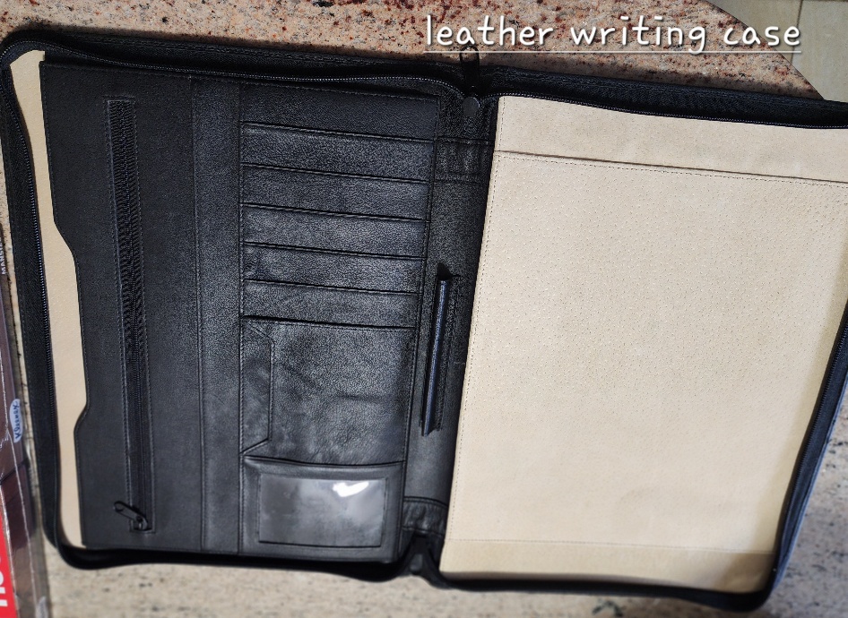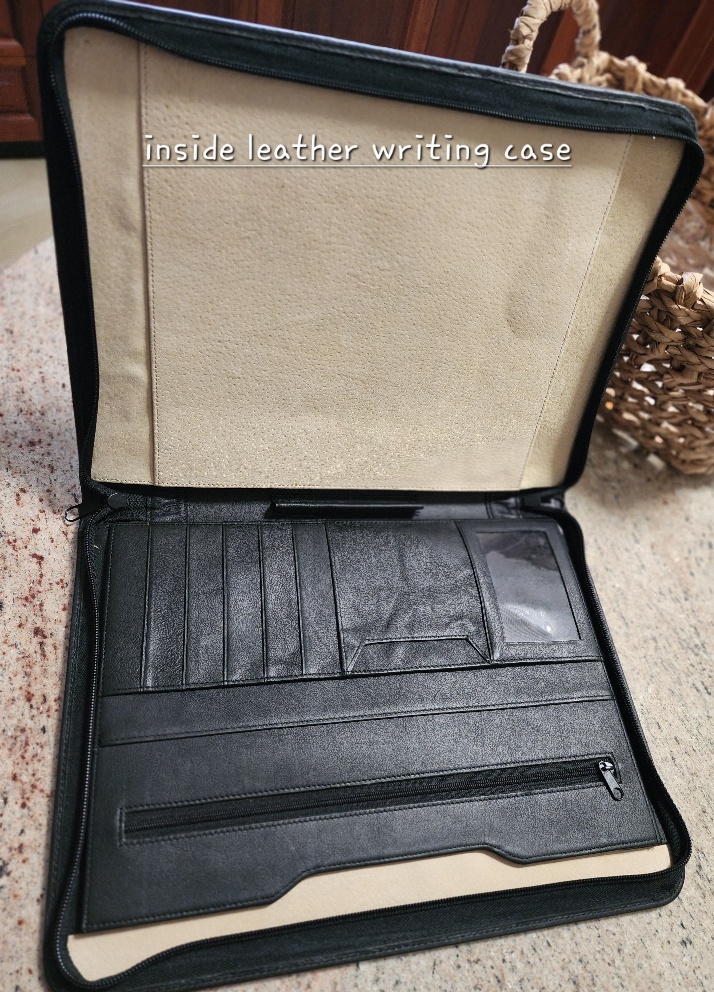 A lovely basket of goodies for Dad to celebrate his special day. Please view photos for contents of basket. Basket includes a lovely leather writing compendium.